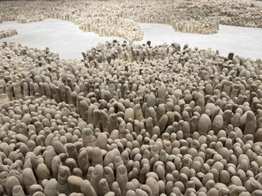 وغيرها. وهم جميعًا يعرفون المادة التي يشتغلون بها معرفةً دقيقة، يوسّعون حدودها، ويحلّلونها إلى عناصرها، كلٌّ بإكسيرِه الخاص، ويبدعون بوساطتها أعمالًا تحوّلية (ميتامورفية): فالرمل يتحوّل إلى ׳أكياس حصى׳ في أعمال فنيخل؛ والآلات إلى مسرح راديكالي في عروض مجموعة ׳زيك׳ التي يُعدّ كيرِن أحد أعضائها؛ والشموع تتحوّل إلى لبنات زجاجية في أعمال فيلموس. جميعهم يركّبون أفكارهم في المرسم ويجدون السبل لتحقيقها كأعمال فنية عبر عمليات بحثية وتحويلية، خيميائية في جوهرها.