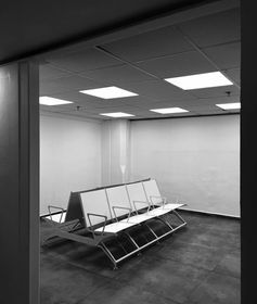 במרכז החלל של הגלריה התחתונה ניצבים בשתי שורות שמונה כיסאות לבנים הניצבים בגבם זה לזה. מראם, אופן הצבתם והתאורה הפלואורסנטית השוטפת הופכים את המקום למרחב המתנה גנרי. החומריות, החזרתיות המודולרית והגוון הלבן מציעים כי אפשר שזהו חדר נייד שניתן לפרק ולהרכיב בכל מקום, או שמא זהו מרחב המתנה סתום לאף אחד ולשום דבר.
